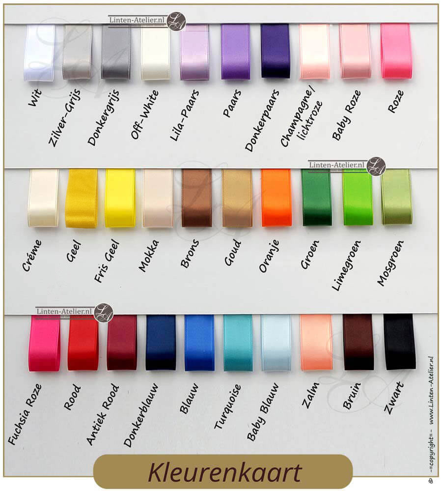 Met de volgende kleuren kunnen wij de linten bedrukken;